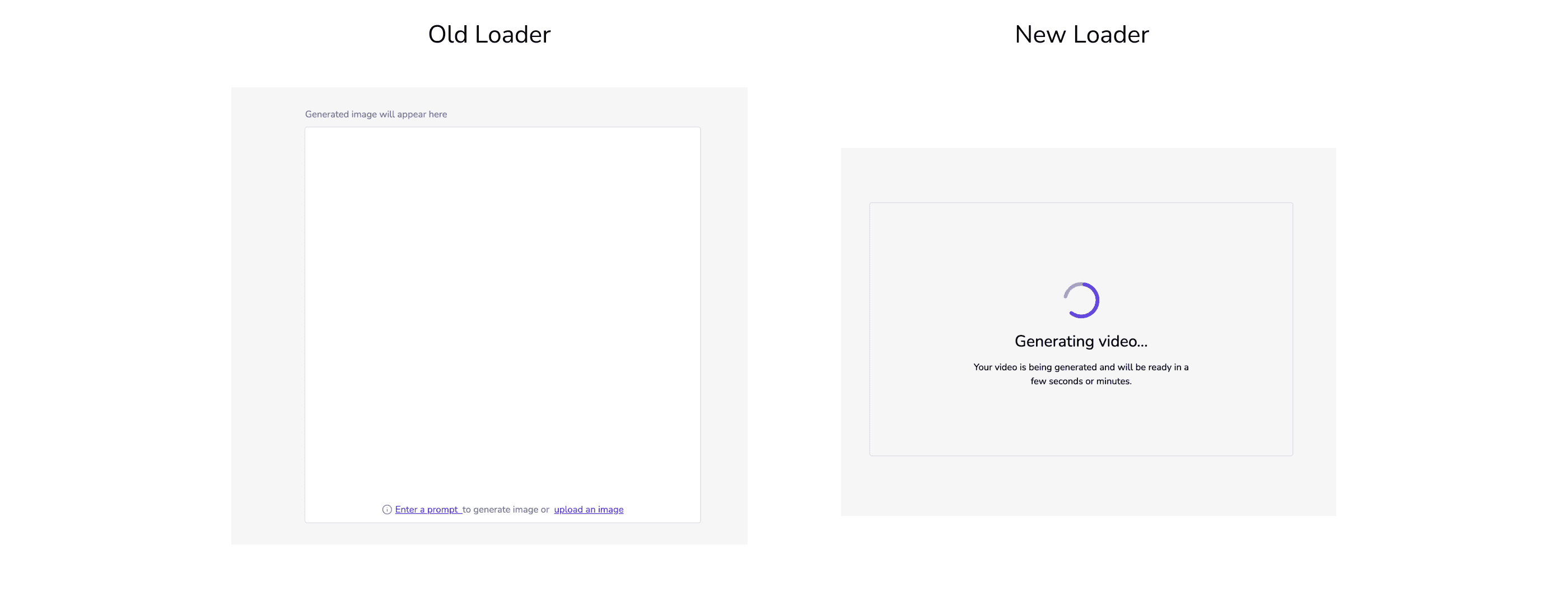 I redesigned the loader screen during generation to address the shortcomings of the previous version, which lacked progress indicators. The old design left users guessing about what was happening or whether the UI had broken, as it failed to provide visible feedback.