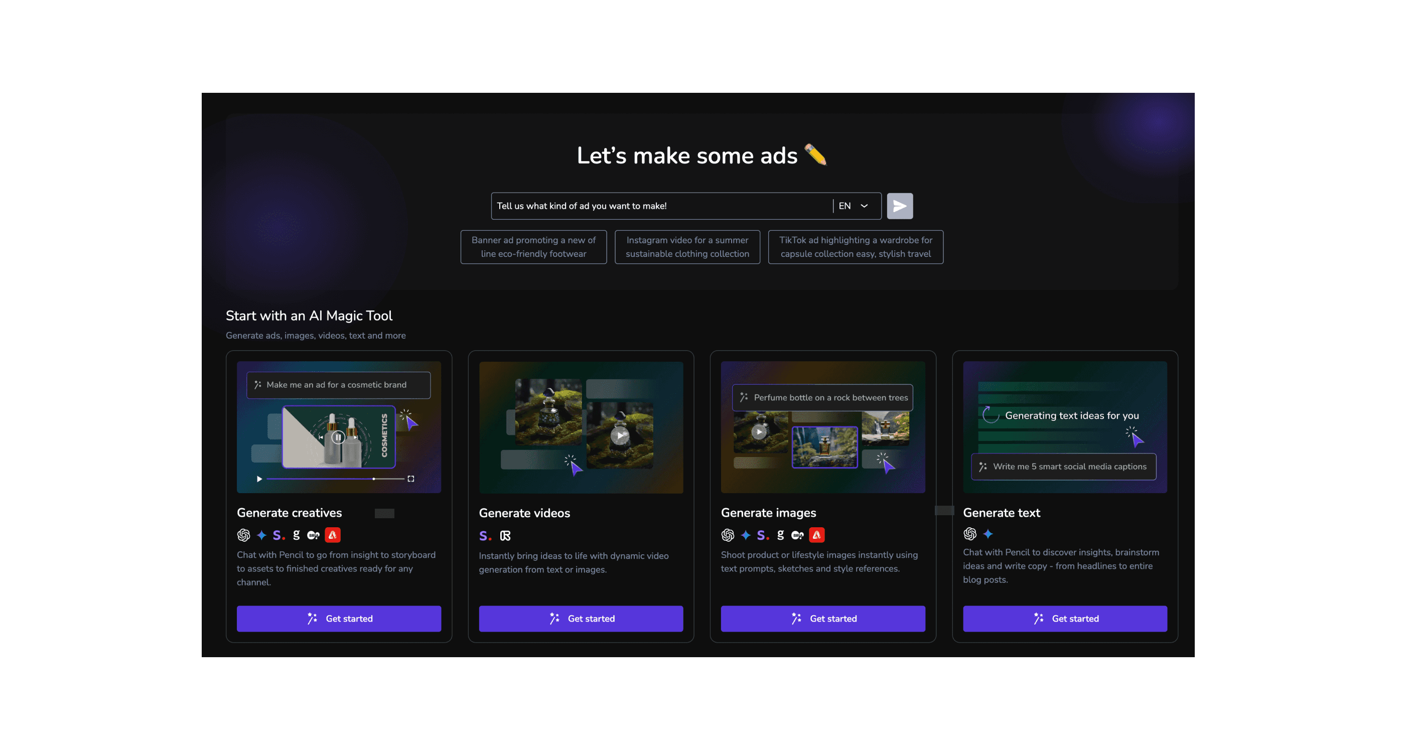 Users struggled with finding relevant video assets for creative ads and similar to image generation there was a need for video generation consistent with their brand identity.Opportunity